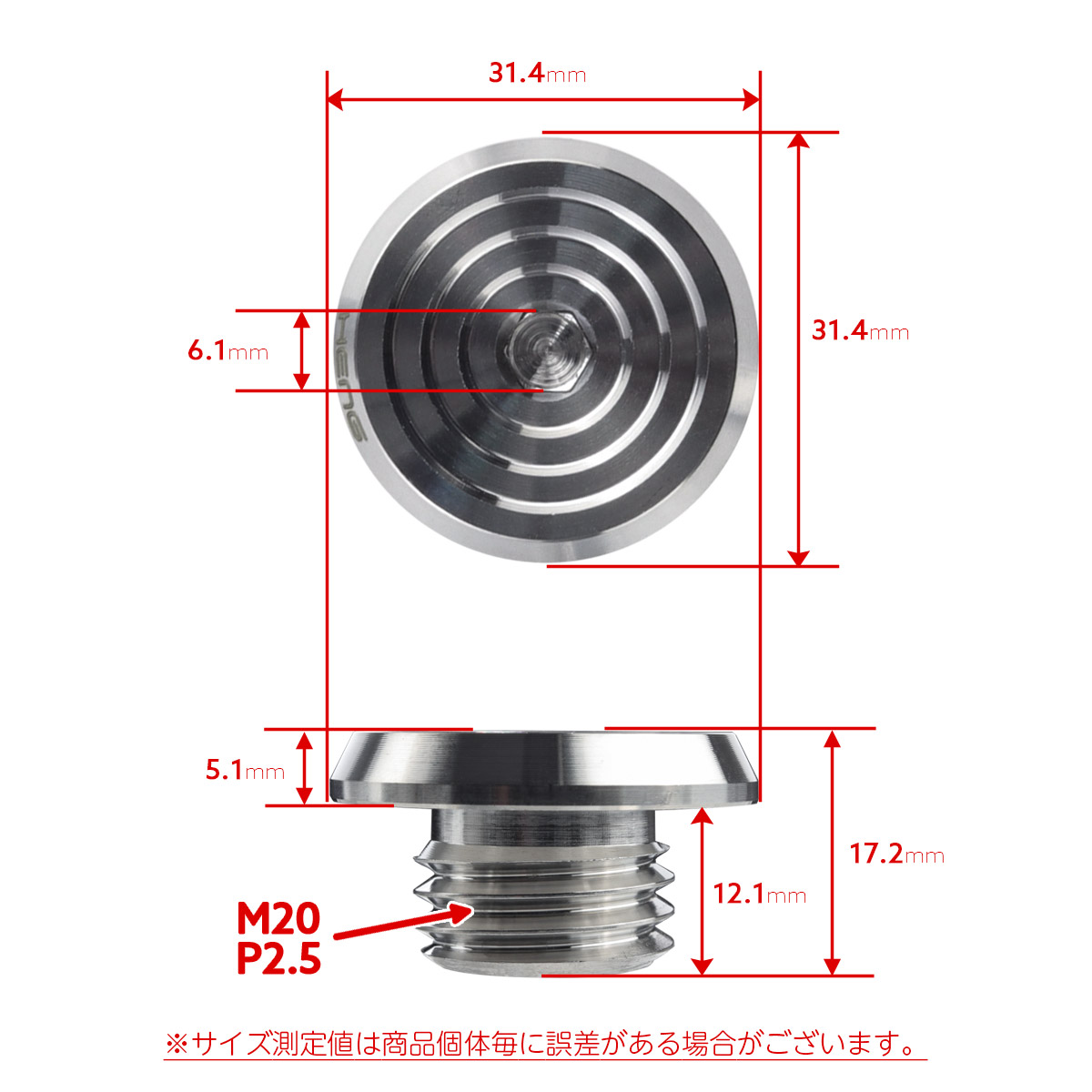 オイルフィラーキャップ M20 P2.5 六角穴 ステンレス製 マットシルバー 汎用 TH0492 【メール便可】