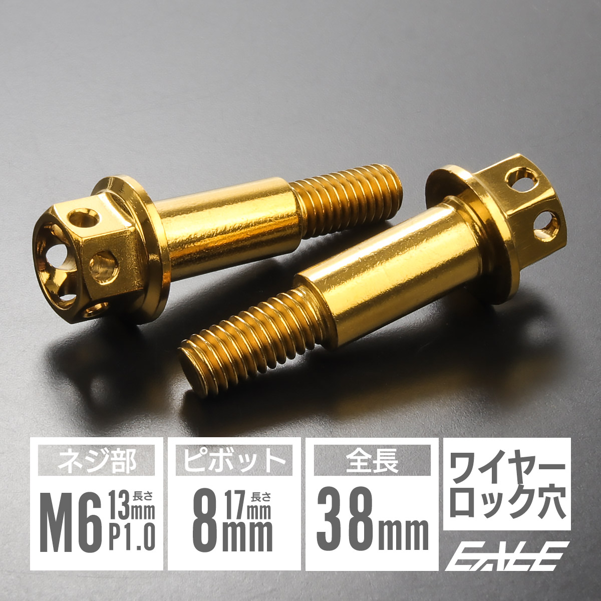 バイク レバー用 ピボットボルト M6 P1.0 ピボット径8mm ステンレス製 ワイヤーロック穴付き 補修 交換 カスタム シルバー 2本セット TH0547【メール便可】
