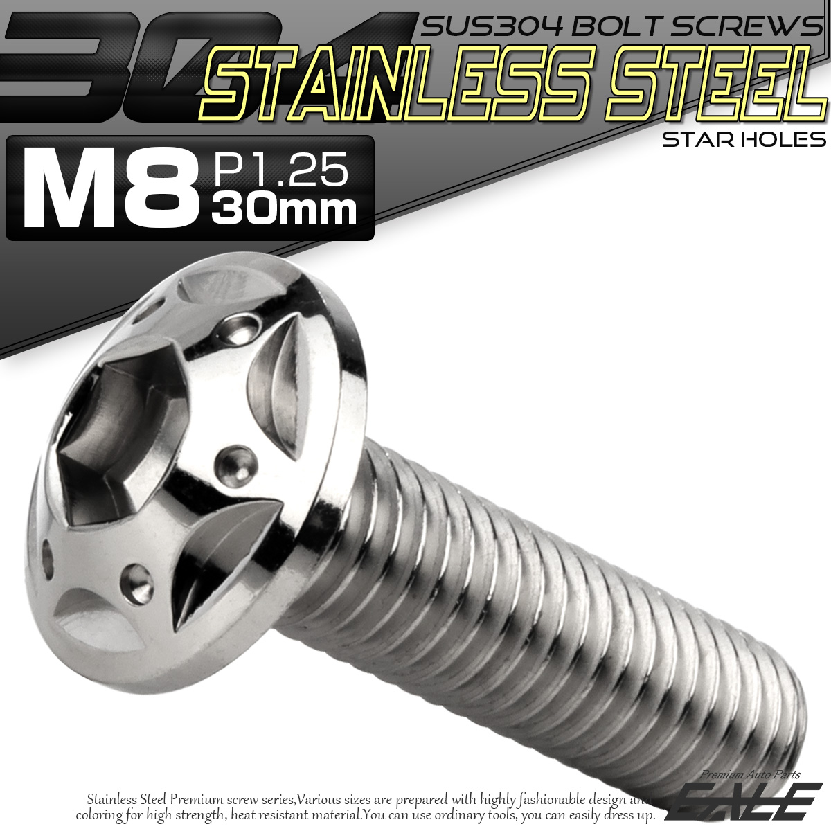 ボタンボルト スターホールヘッド M8×30mm P1.25 フランジ付 六角穴 SUS304 ステンレス シルバー TR0425 【メール便可】