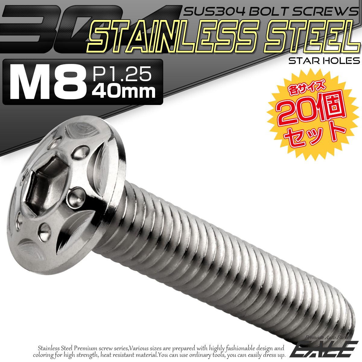 20個セット ボタンボルト スターホールヘッド M8×40mm P1.25 フランジ付 六角穴 SUS304 ステンレス シルバー TR0427-20SET