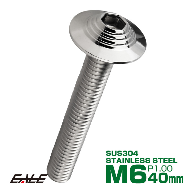 ボタンボルト M6×40mm P1.0 SUS304 ステンレス シェルヘッド 六角穴 フランジ付き ボルト シルバー TR0904 【メール便可】