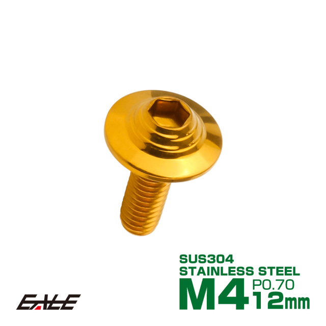 ボタンボルト M4×12mm P0.7 SUS304 ステンレス シェルヘッド 六角穴 フランジ付き ボルト ゴールド TR0905 【メール便可】