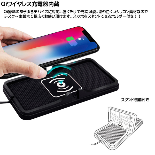 Qiワイヤレス充電パッド スタンド機能付き スマホ車載器 滑りにくいシリコン製 Y-107